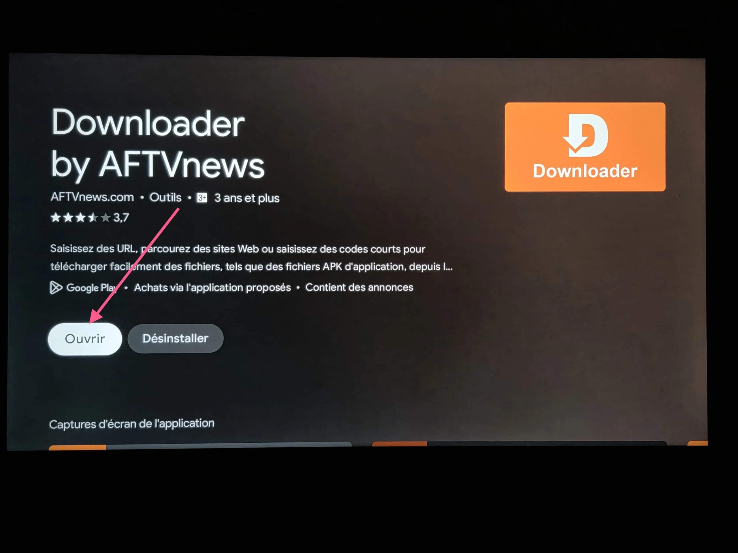 - Revenez au Downloader pour installer notre app.